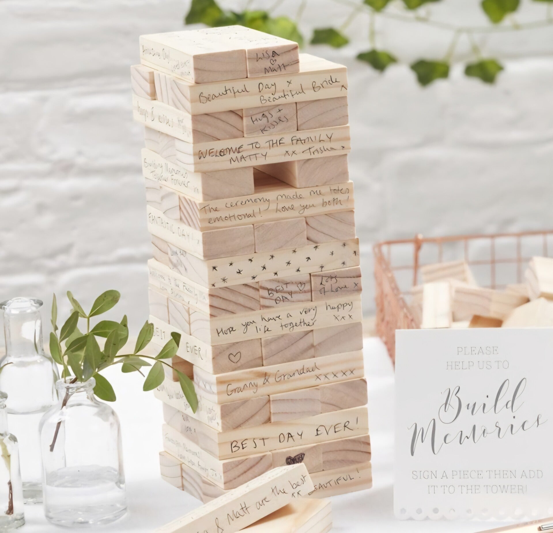 Guests write their message and build a tower, just as your love will build after your big day.