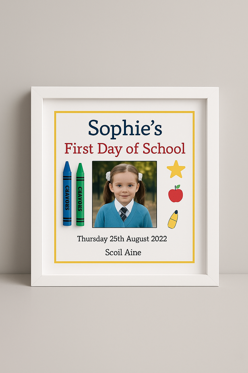 Fully personalised with name, school name and date, add your own photo to finish the frame off.