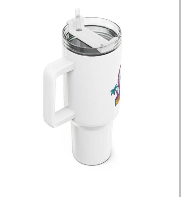 A 40oz stainless steel tumbler finished in high-gloss ORCA coating, this travel companion brings vibrant, crisp color to your everyday hydration. Double-wall vacuum insulation keeps beverages hot or cold for hours while the rubber-sealed push-down lid and included straw help prevent spills on the go. The large capacity and comfortable handle make it great for long drives, theme-park days, or work shifts when you need a reliable, bright cup that stands out. Hand wash only to preserve the glossy print and coating.